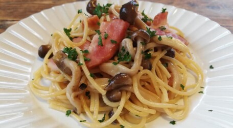 【ホットクック】ワンパンパスタ/きのことベーコンのパスタ