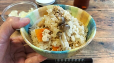 鶏肉の中華風の炊き込みご飯を作ります。 \ 鶏ときのこのうまみたっぷり/ 冷めても美味しく冷凍にも向いています。 味付けはめんつゆでシンプル。 【材料】3~4人分 米 … 続きを読む ホットクック とり中華釜めしのレシピ/作り方/鶏そぼろ・鶏ハムアレンジ/きのこ/生のお肉でも